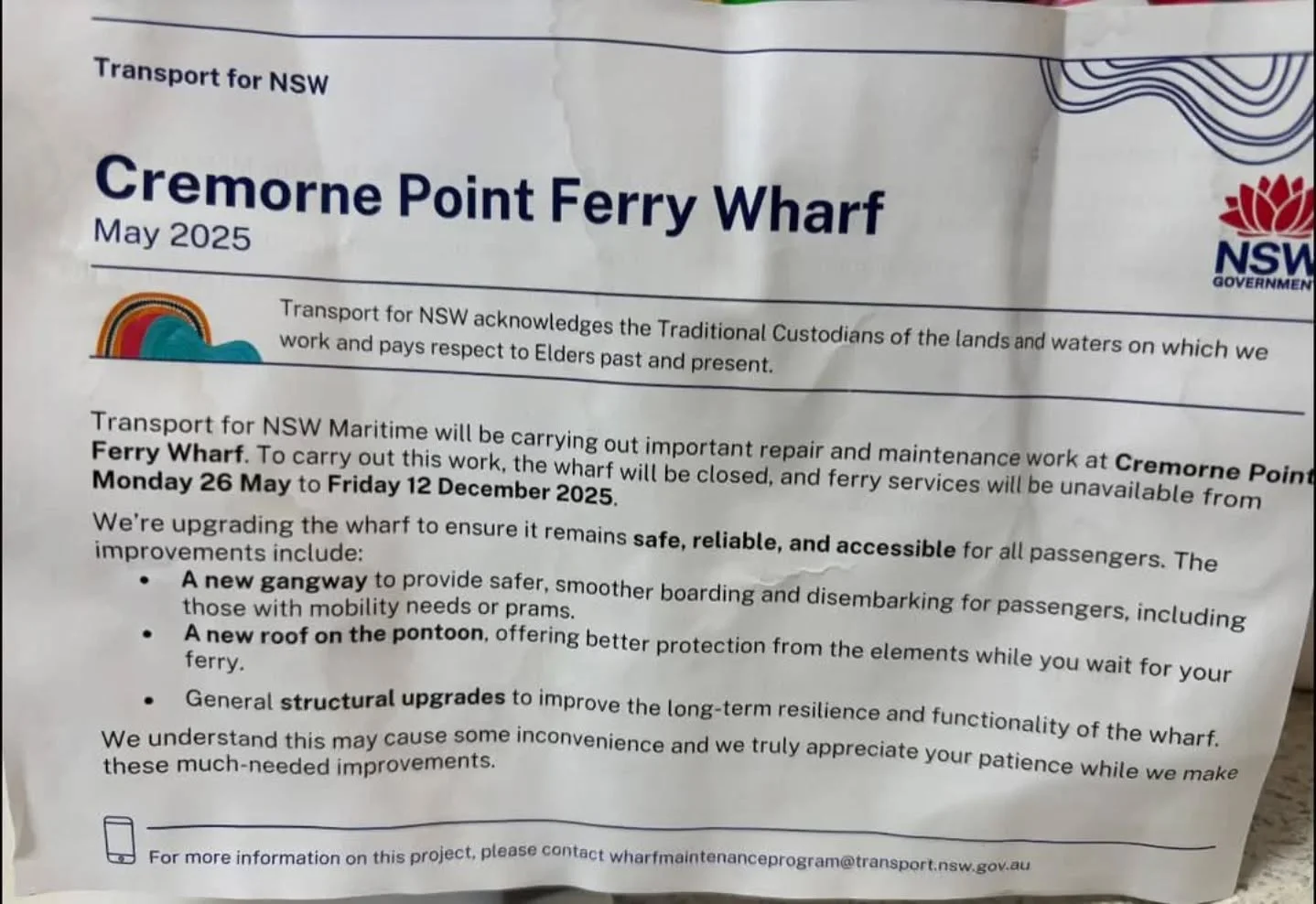 Published inCremorne Point Ferry Wharf to Shut for 6 Months, Sparking Community Concerns